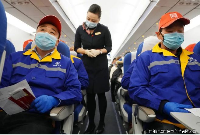 搭载中铁七局三公司51名建设工人的东航MU9621包机航班从陕西西安飞往浙江义乌。这批建设工人将返岗复工(新华社记者 邵瑞 摄)